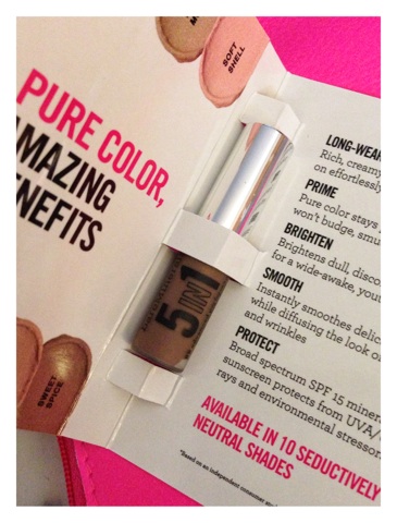 Fourth is Tint & Sass from Elizabeth Mott. I’m a fan of lip stains. I’ve tried several. Benefit’s Benetint has been my favorite for awhile now. I think I might like this one a bit more. It smells like Cherry Popsicle that swallowed an itty bit of cough syrup. This stain is thicker than Benetint. And the large doe foot applicator ROCKS!! Also, the bottle has a regulator in it! NO stained fingers, NO spilling. (Yes, I turned it upside down, just for you!) We got a full size one. Retail is $22.99!