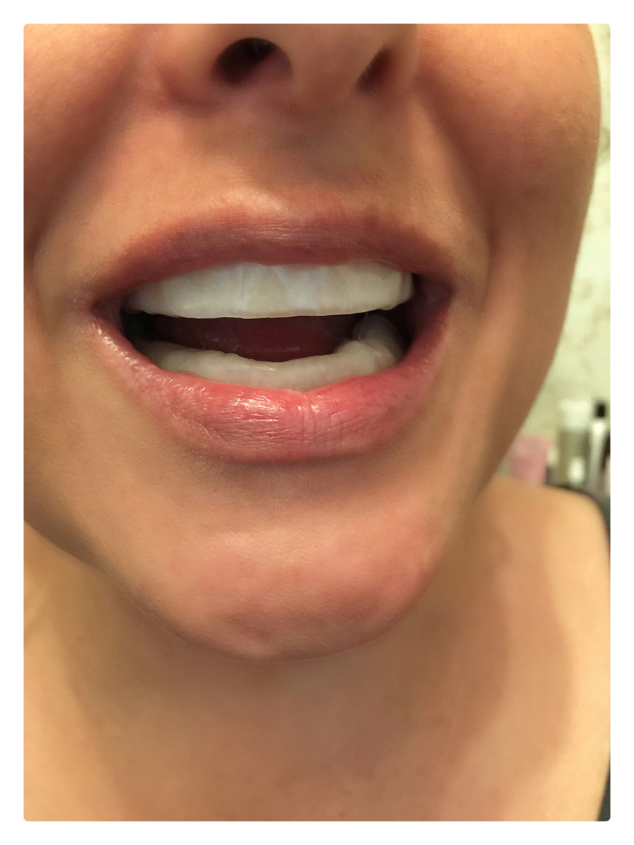 I comes with a couple pouches of rinses and 2 sets of wax whitening trays. The rinses are pretty self-explanatory.. put in mouth and swish for the allotted time. The wax trays you put in your mouth and mold them to you teeth. I pushed and sucked until they were comfortable. And then you wait. Rinse and repeat with the second pair of the wax trays… and then you rinse again.