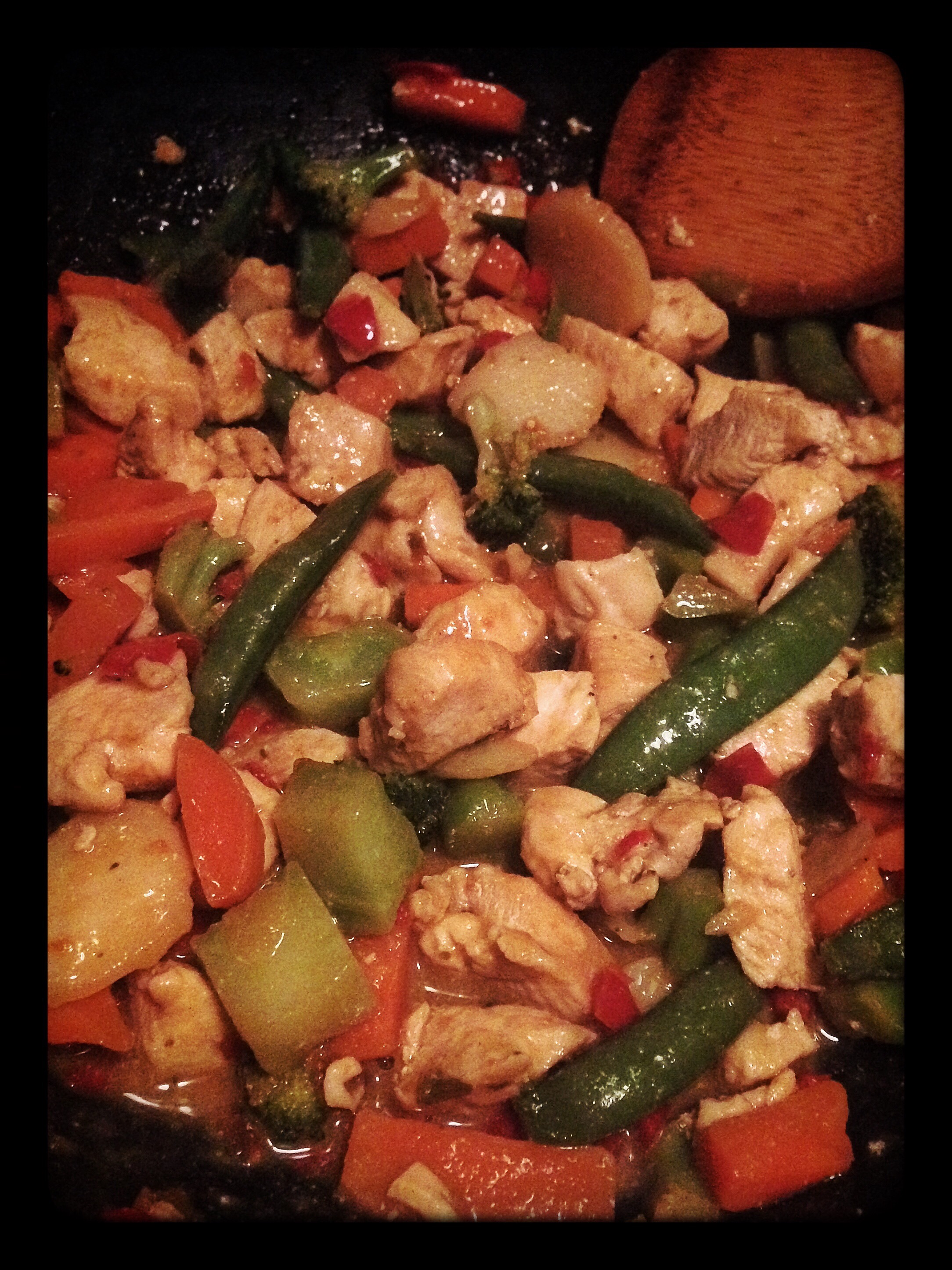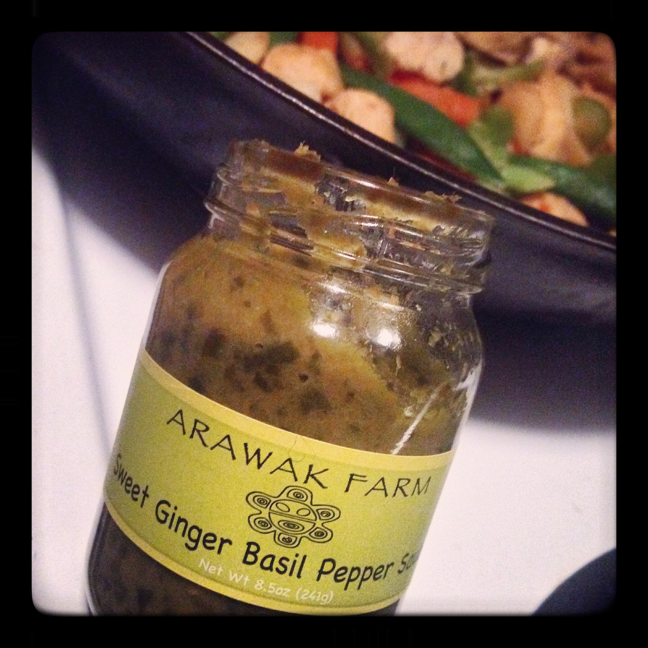 First, we tried The Sweet Ginger Basil Pepper Sauce. This was a Monday Night Meal Saviour. Seriously. I made a super quick, super yummy Thai-esque Stir Fry. Ready for this? Chicken, a bag of stir fry veggies, a cup of water, a tablespoon of cornstarch and THIS SAUCE! Bam. Dinner. The Boyfriend ate it up. The ginger and basil were wonderfully balanced. The brightness of sweet heat from the habanero perfectly rounded out the dish.